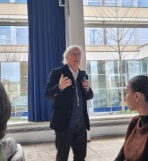 Several students (of the IB classes) used the opportunity to meet Ben Feringa, the chemistry Nobel prize winner of 2016, in person after his talk in the Aula. Amongst their many questions were inquiries about the intial source of his breakthrough idea and how to keep up the motivation for a long time despite setbacks. The session was ended with signatures and selfies with the famous and empathic scientist.