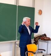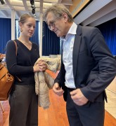 Several students (of the IB classes) used the opportunity to meet Ben Feringa, the chemistry Nobel prize winner of 2016, in person after his talk in the Aula. Amongst their many questions were inquiries about the intial source of his breakthrough idea and how to keep up the motivation for a long time despite setbacks. The session was ended with signatures and selfies with the famous and empathic scientist.
