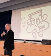 Les élèves étaient accompagnés par Messieurs Davide Toni et Paolo Ippolito. La classe a eu l’occasion d’échanger avec le dessinateur de presse. Leurs questions, à la fois pertinentes et réfléchies, ont témoigné de leur curiosité et de leur sens critique. Ils se sont exprimés avec assurance et sérieux face à l’artiste-journaliste. En présence d’autres classes, nos élèves se sont distingués par la qualité de leurs interventions et la maturité de leur attitude.