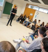 Den Dënschden 13. Januar 2026 ass eng Ekipp vum Mierscher Theater zesumme mat Kënschtler*innen aus Berlin a Lëtzebuerg fir e Workshop bei d’Schüler*innen vun der 3eA komm, fir mat hinnen d’Thema Männlechkeet, Männlechkeetsstereotyppen an toxesch Männlechkeet ze erörteren. Well de Mierscher Theater un enger Theaterkreatioun zu dësem Thema schafft, déi am Juni bei hinnen zu Miersch op der Bün virgestallt gëtt, hunn si d’Hëllef vu Jugendleche gesicht, fir dëst Thema realitéitsno ze behandelen. Op dës Manéier konnt eng kritesch a respektvoll Reflexioun iwwer d’Thema Männlechkeet stattfannen, an där sech d’Schüler*innen konnte matdeelen an austauschen an hire kreativen Ausdrock trainéiere konnten.