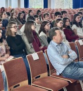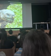 Le 12.12.25, Mme Eilo Elvinger - photographe réputée - nous a fait le plaisir de donner des conseils dans leur création artistique aux élèves de trois classes (4CLZH1 & 3CE & 3CF) à la salle des fêtes de l’établissement. Au cours de sa visite, elle a présenté et expliqué ses œuvres, mais elle a aussi analysé et commenté la première série de photos prises dans le cadre du projet photographique commun des élèves sur le thème de cette année : ALTRUISME & DÉMOCRATIE.
